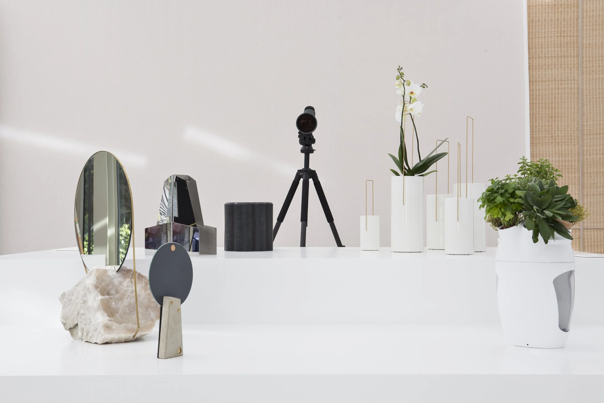 Ten telescopes invited the visitors to focus on details of the excellently crafted pieces. The time spent focusing, looking around and zooming in on the objects establish a different connection with the beholder. A combination of ceramics and brass handle makes a lot of sense for orchids to hold on to Mr Wong, a flower pot by eL Be Keramik.